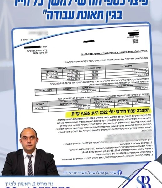 עינכם הרואות כי לנפגע הושגה קצבה חודשית בסך של 9,586 ש"ח למשך כל ימי חייו!